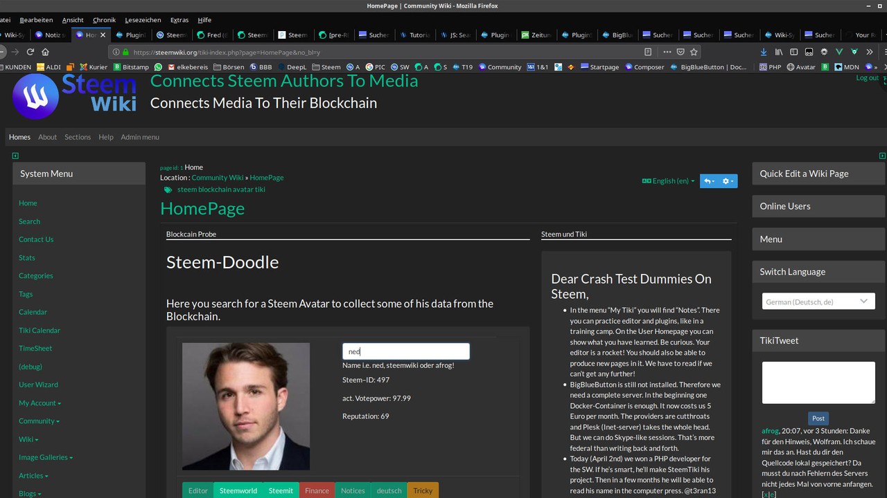 It is a swiss knife for the Steem, the authors and the Content market in more than one aspects. Our prototype, the SteemWiki will be built up by the commitment of well known Steemians of the Community #deutsch. We are all volunteers at the moment but with ongoing capitalisation of our project, we hire JS+PHP developers. In between, we build up a marketplace for authors, lectors, curators, translators, artists, photographers, and so on. They will meet in SteemWiki content dealers and and editors. This description is to be continued…